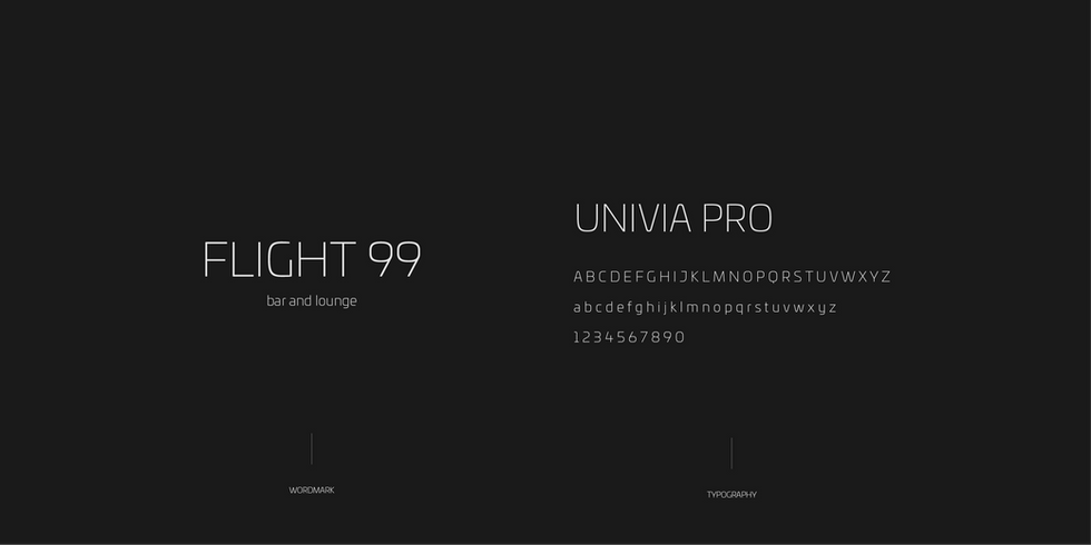 Flight 99 was a concept for a bar and lounge located in major airports around the world. Inspired by the escapist nature of travel, Flight 99 seeks to provide travelers with a refuge from the mind-numbing hustle and bustle of airport corridors. The primary objective of this project was to create a brand identity that captured both the modernity of the brand and the warmth of the physical space.