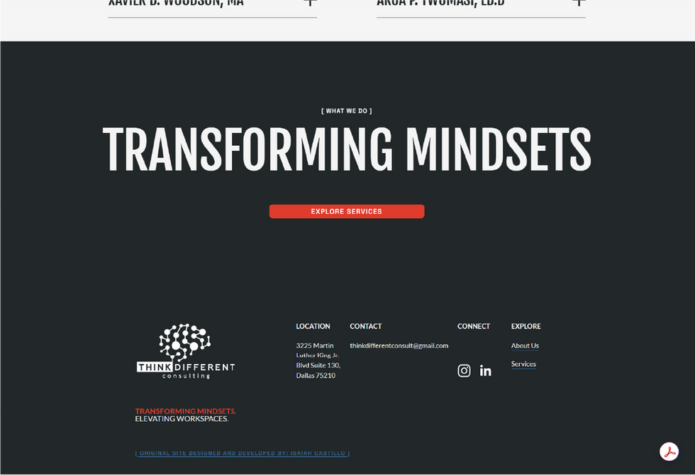 Think Different Consulting is a workplace wellness and mental health firm focused on helping organizations build healthier, more sustainable team environments. This project centered on translating that mission into a clear, professional digital presence that could communicate both the firm’s expertise and the practical value of its services.